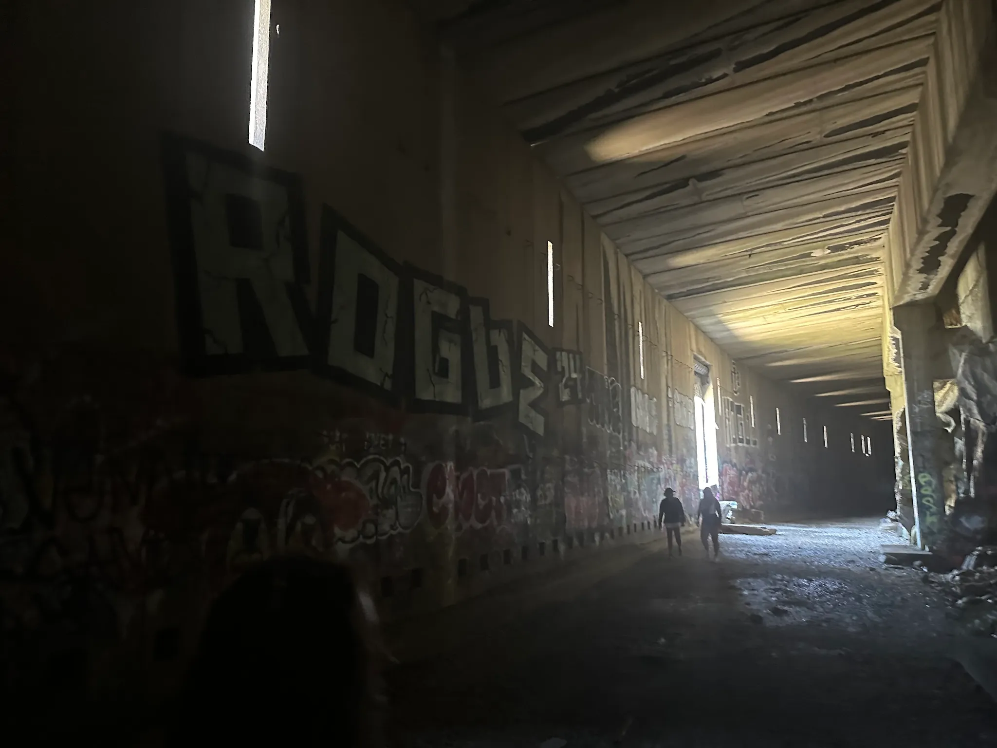 The first tunnel feels the oldest: a black maw blasted and carved out of the mountain, leaving blocky unfinished edges behind. It took an entire crew of Chinese railroad workers a full day to advance a few inches. The floor is uneven. A trickle of water dribbles through. We sweep our flashlights over the walls, studying the graffiti, which is appalling but also breaks up the endless, monotonous dark. Endless names and initials. “JESUS” and a cross, Christian vandalism, always amusing. BUSH DID 9/11. TRANS IS BEAUTIFUL.