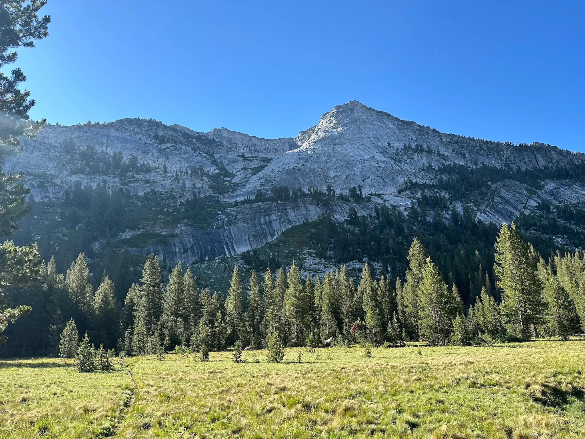 Tenaya Peak is immense, shining white overhead. It evokes my feelings of looking up El Captain. It’s only half as tall, but that’s still huge. Unlike El Capitan, which is starkly vertical, this granite sea is sloped, which is what supposedly makes the climb accessible to someone like me. Despite the peak’s formidable size, I feel good. We can do this.