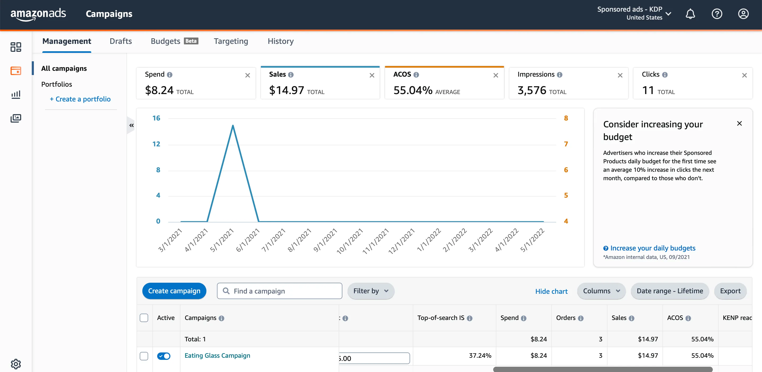 I haven’t looked at this Amazon ad dashboard in a year, but apparently I sold three books a year ago.