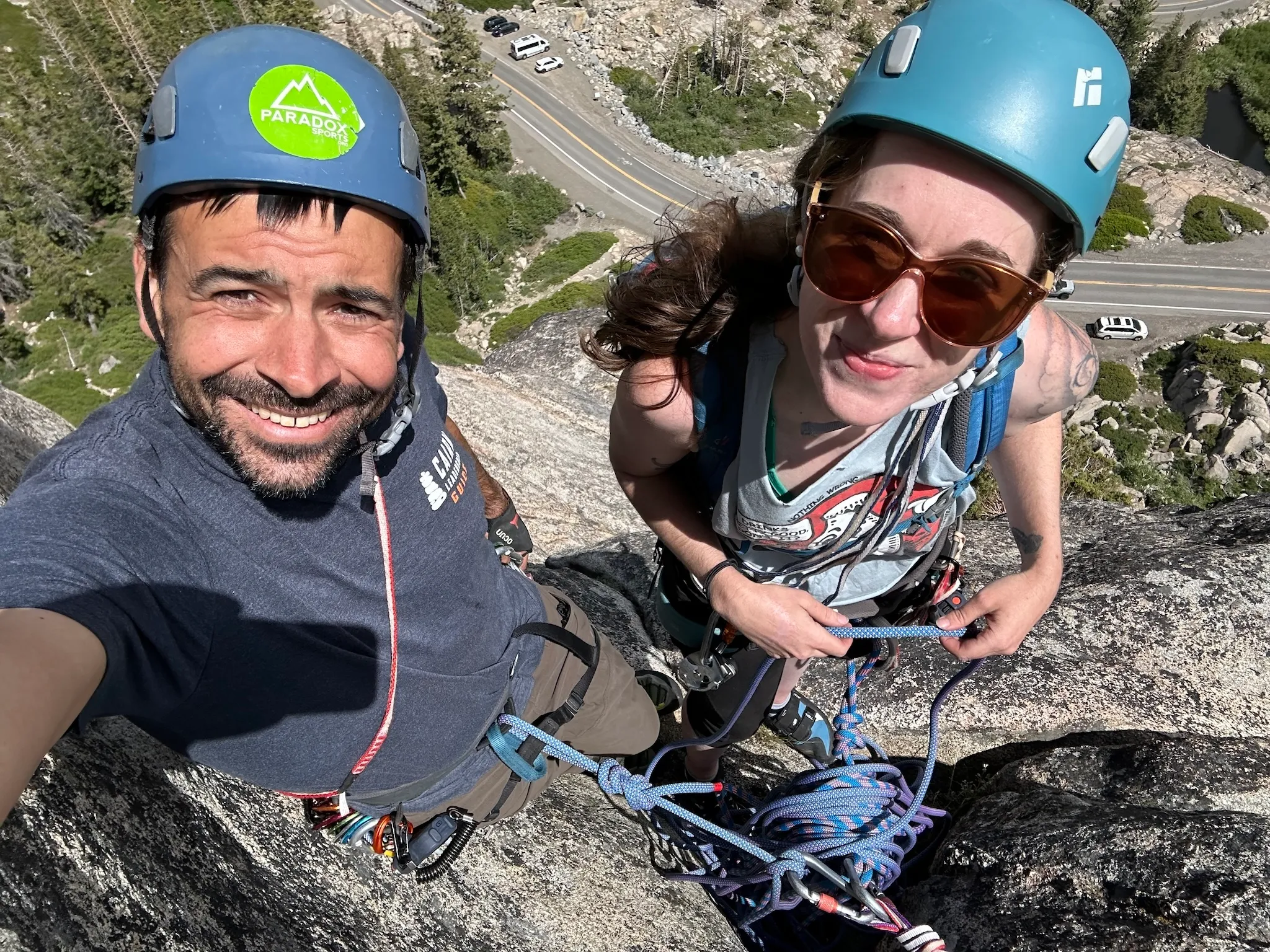 We feel exhilarated when we top out. Even though most of the climbing moves were easy, this was our hardest multi-pitch climb yet. We’re getting better, a little each day.