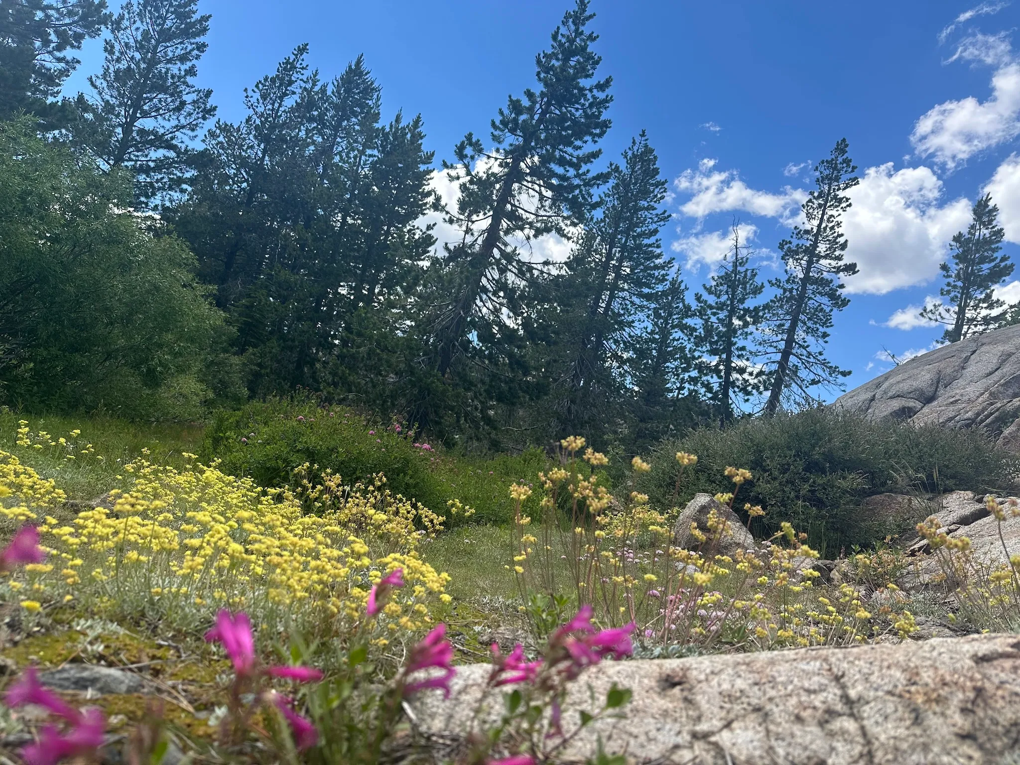 I imagine Lee’s parents here, slaving away in the dark, swinging hammers or setting explosives. In the later tunnels, which are fortified with more modern concrete slabs, we encounter thin gaps and windows. Outside, beyond the endless dark, is indescribable beauty: lush meadows bright with wildflowers, neighboring granite peaks, pine forests fiercely clinging to their slopes. These views must have been both a blessing and a torment to the Chinese laborers within these tunnels. Such stark beauty so close at hand, and so unattainable.